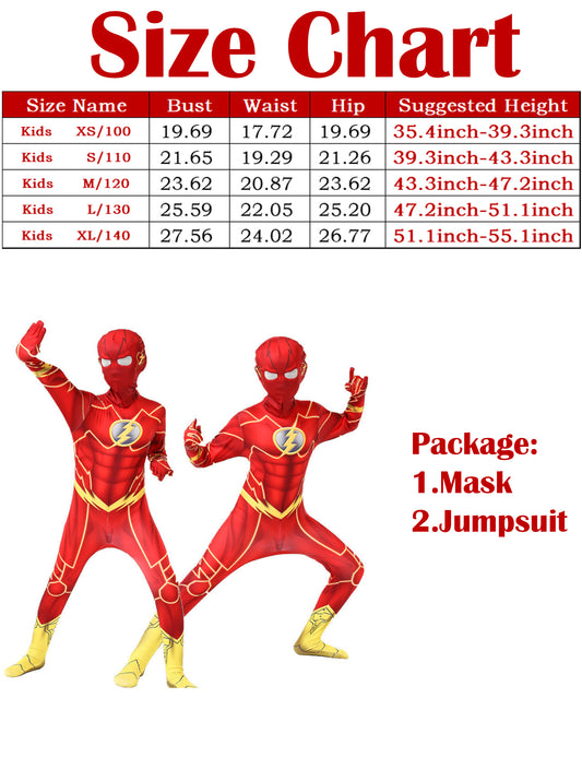 Liokoon Superhero Costume Kids Boys Red Superhero Cosplay Mask 3D Style Jumpsuit Bodysuit for Kids Toddler Boys Aged 3-12